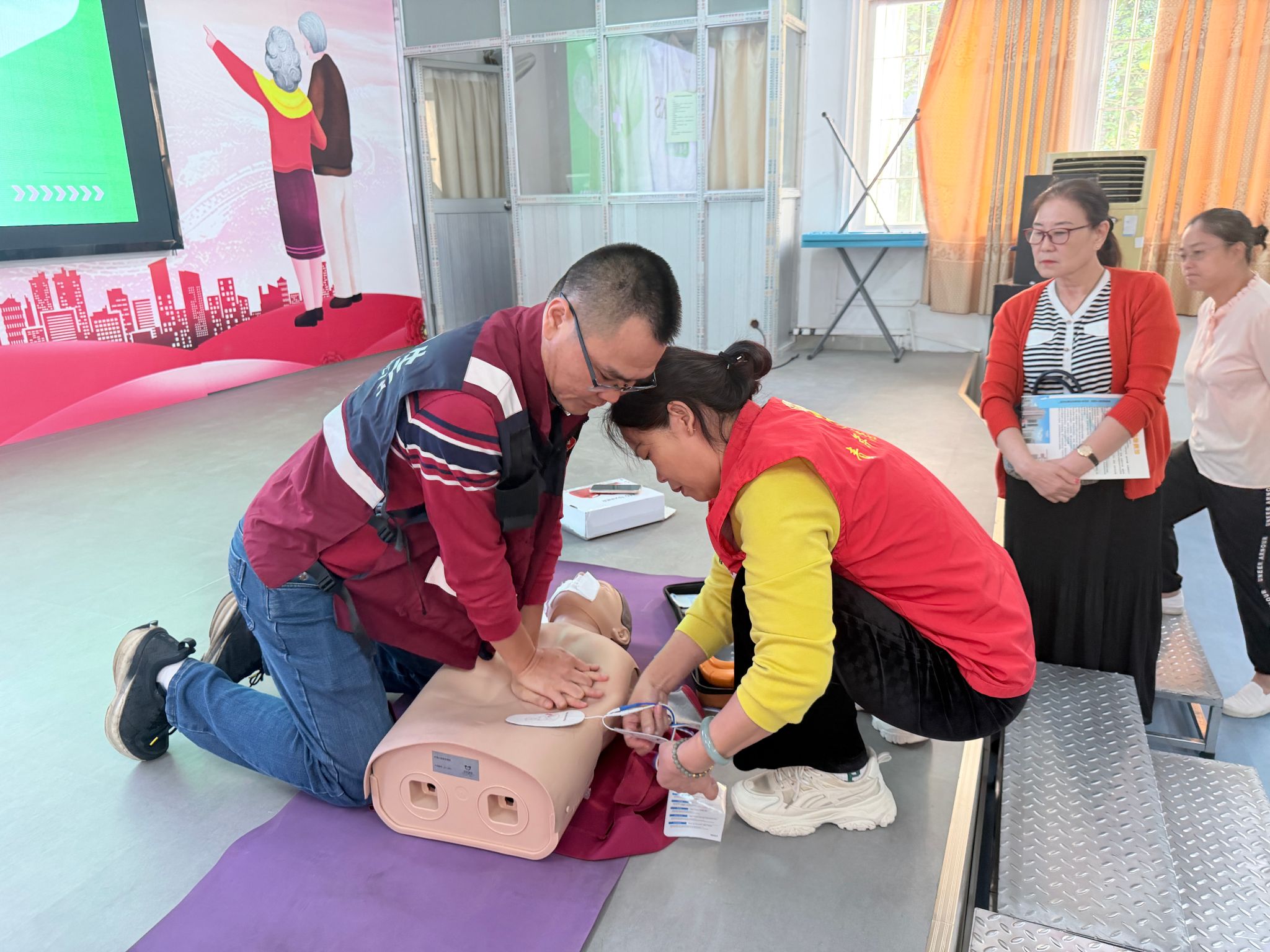 本次活动以“智慧赋能•医路健康”为主题,聚焦健康需求,邀请了附属第二医院心血管内科、中医科、康复医学科等多个科室的专家团队现场坐诊。专家们耐心接待每一位咨询者,通过问诊、检查、答疑等方式,为大家提供个性化健康指导,针对高血压、颈椎病疾病等常见问题给出专业诊疗建议。附属第二医院心血管内科专家以“心血管疾病预防与管理”为主题,结合临床案例讲解高血压、冠心病等常见老年病的危险因素、早期症状及干预措施,强调合理饮食、规律运动和定期体检的重要性,帮助老同志建立科学的健康管理观念。康复医学科医护人员现场演示心肺复苏(CPR)、海姆立克急救法等实用急救技能,通过模拟操作、互动问答等方式,让大家直观掌握紧急情况下的自救互救步骤,提升应对突发健康事件的能力。